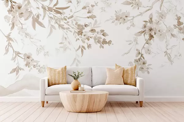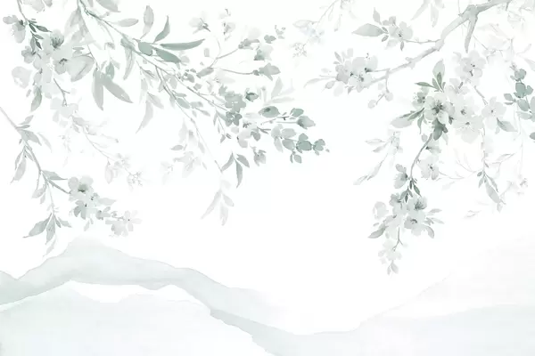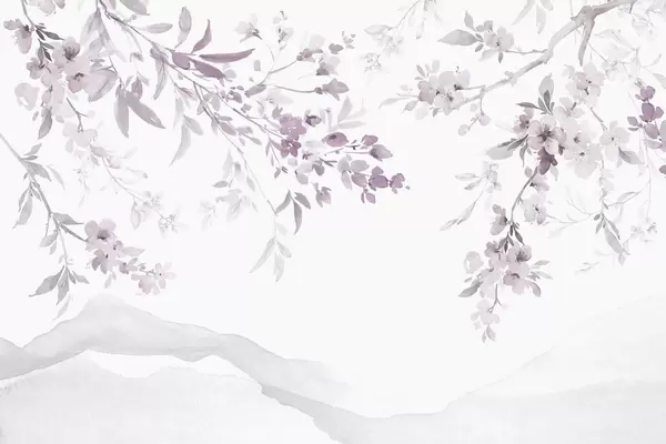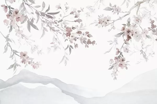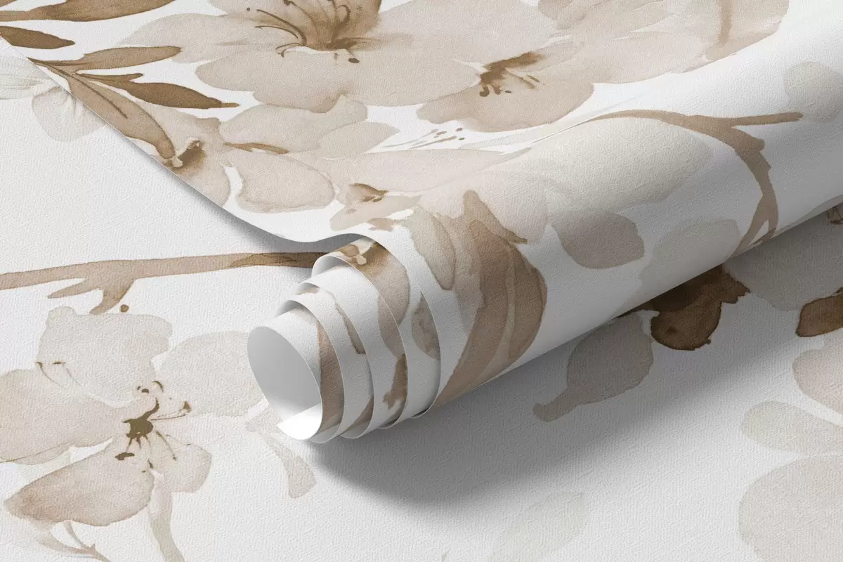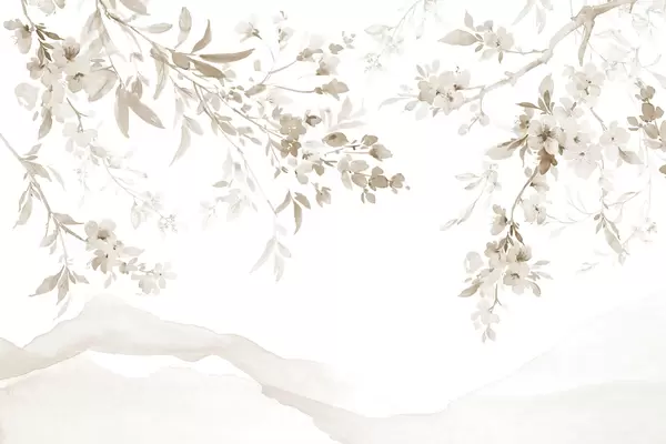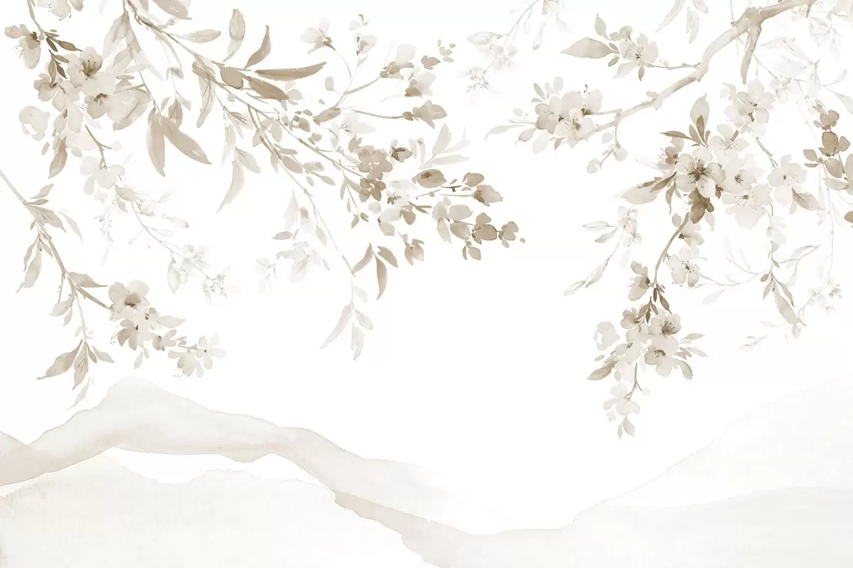 Fototapetes Ziedoši zari, akvareļa imitācija, smilškrāsas toņi Nr. w03935v2