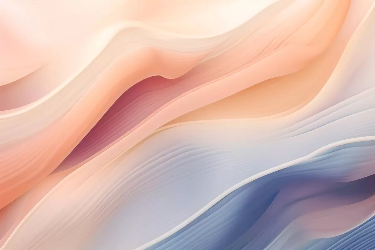 Fototapetes abstraktas plūstošas formas, ko iedvesmojis vējš un ūdens, ar rokām apgleznotas ar maigiem pasteļkrāsas gradientiem un smalku tekstūru, organiska kustība kā zīda palēninājums, bāls ziloņkaula fons, dabiska harmonija, bez priekšmetiem, bez simboliem, mūsdienīga poētiska tapešu kompozīcija Nr. w03942