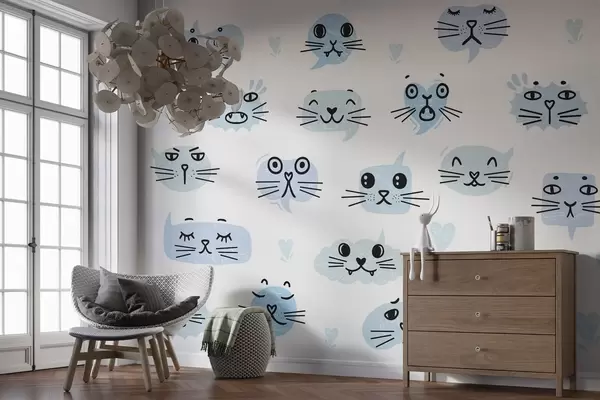 Fototapetes Kaķis saskaras ar ziliem toņiem Nr. w03951v2