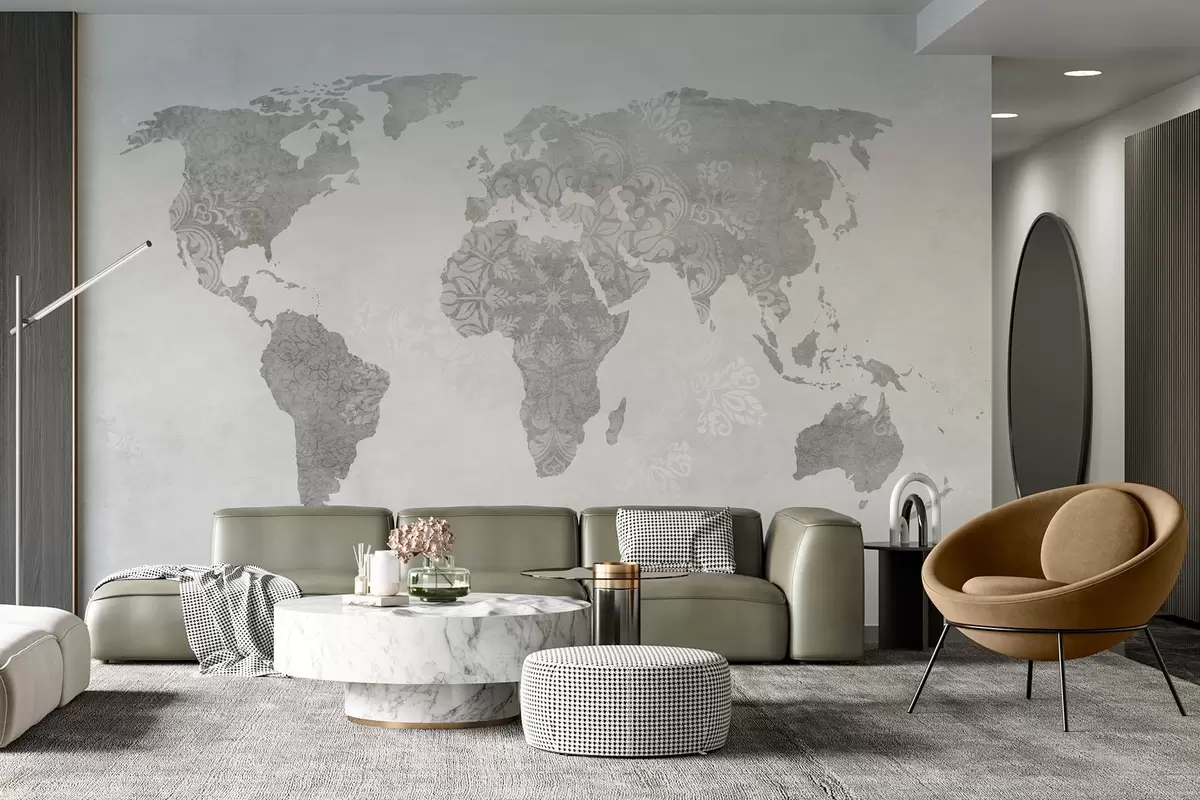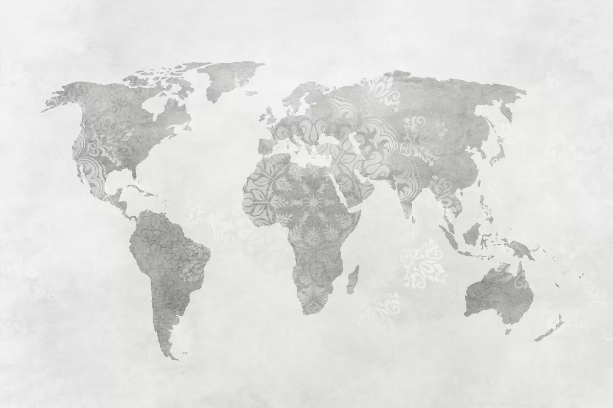 Fototapetes Pasaules karte ar rakstu, melnbalti toņi Nr. w03954v1
