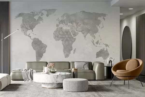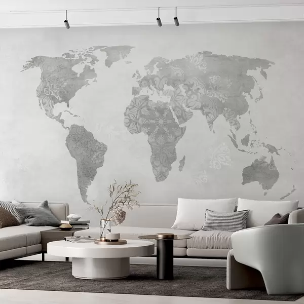 Fototapetes Pasaules karte ar rakstu, melnbalti toņi Nr. w03954v1