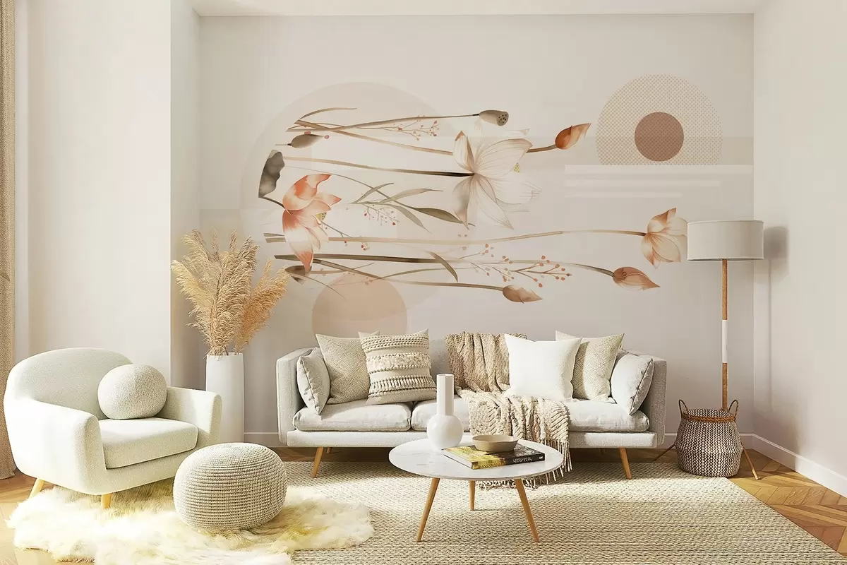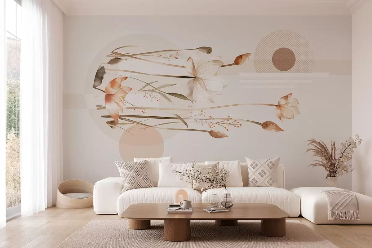 Fototapetes pasteļveida lilijas un bohēmas ģeometrija Nr. w03964
