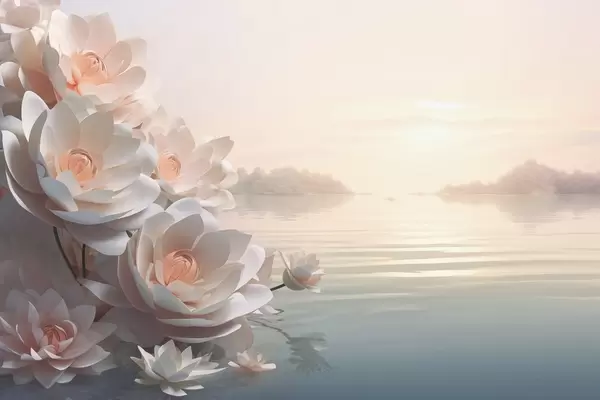 Fototapetes Pasteļ lotosi uz ūdens zem vakara debesīm Nr. w03988