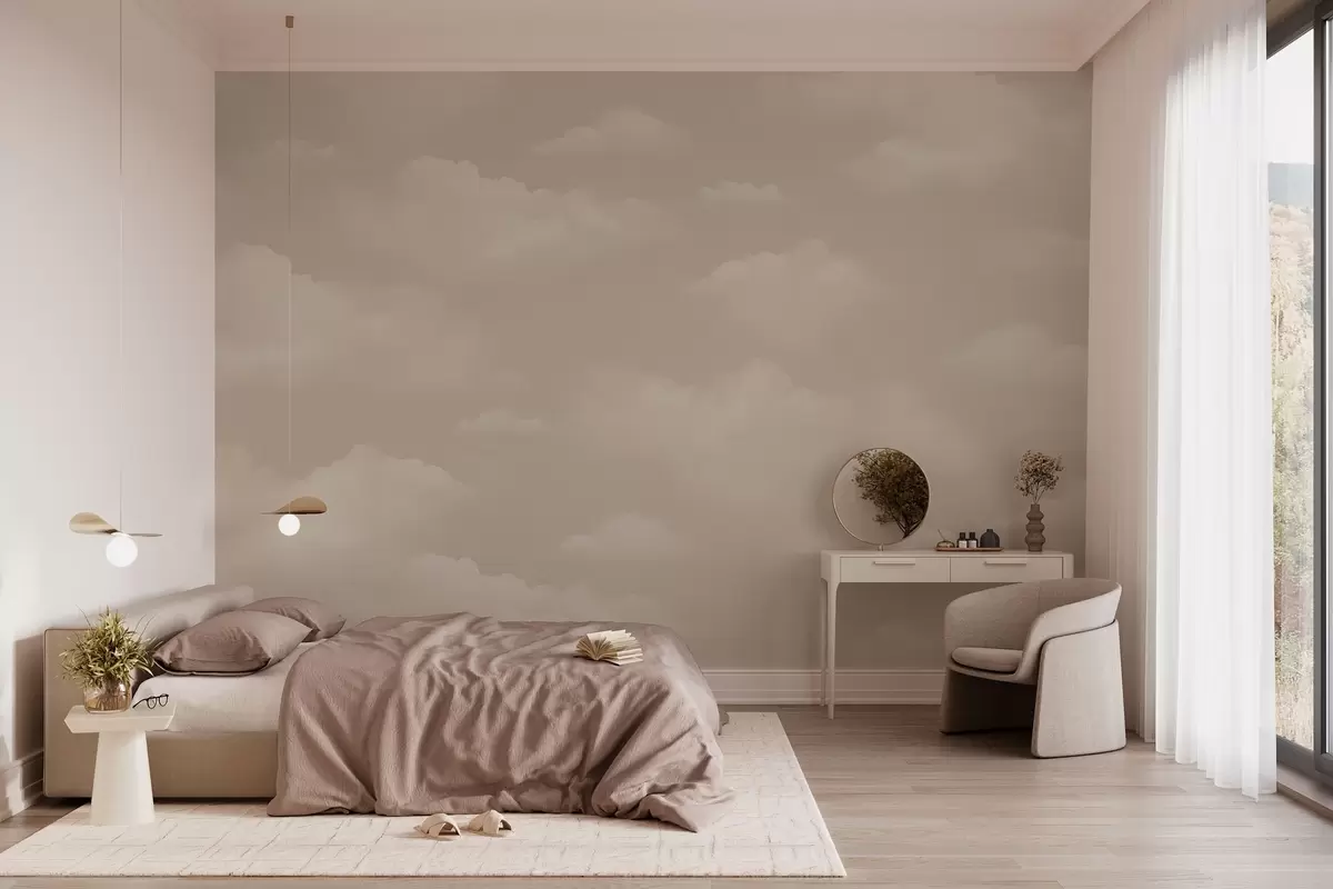 Fototapetes Krēmīgi mākoņi uz gaiši bēša fona Nr. w03994
