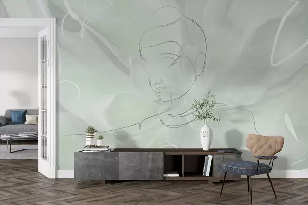 Fototapetes Ziedu abstrakcija ar Budas līnijas zīmējumu, zaļas krāsas Nr. w04004v3