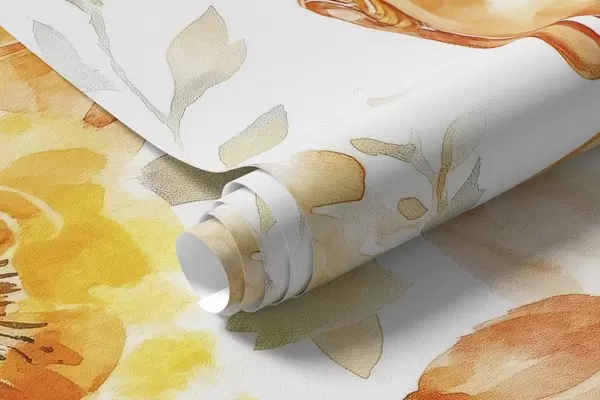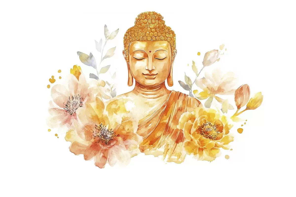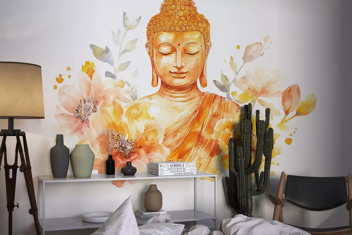Fototapetes Akvareļu Buda ar ziediem, garīgo, oranžo krāsu palete Nr. w04005