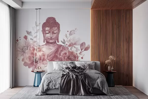Fototapetes Akvareļu Buda ar ziediem, garīgs, bordo krāsu palete Nr. w04005v2