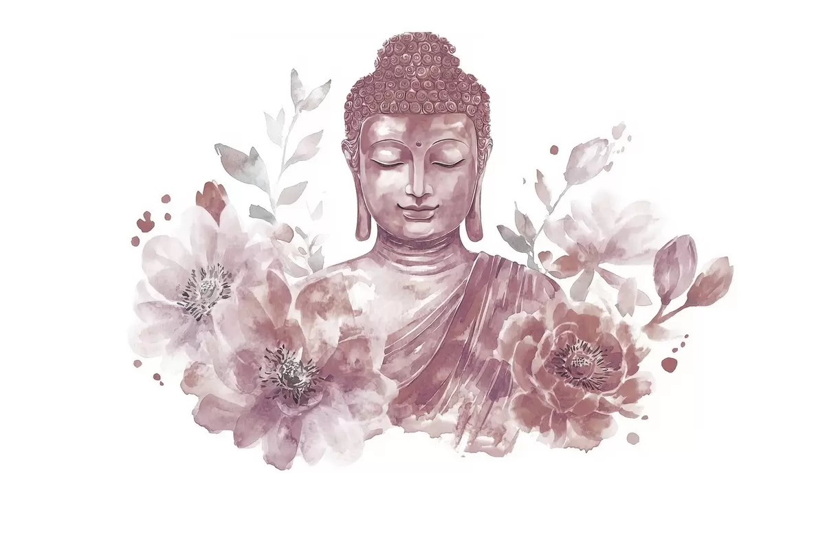 Fototapetes Akvareļu Buda ar ziediem, garīgs, bordo krāsu palete Nr. w04005v2