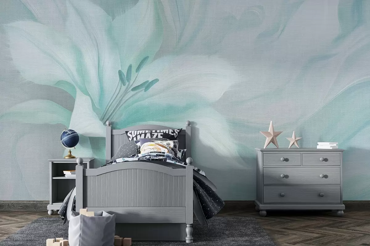 Fototapetes Lilija ziedu šķidruma abstrakcija, ziedu, akvamarīna krāsas Nr. w04006v3