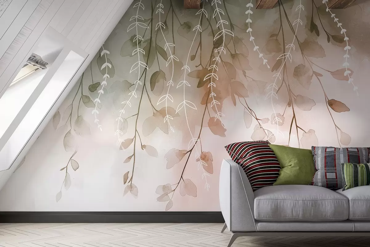 Fototapetes Zari ar lapām akvareļu stilā, dabiskās rudens krāsas Nr. w04007v1