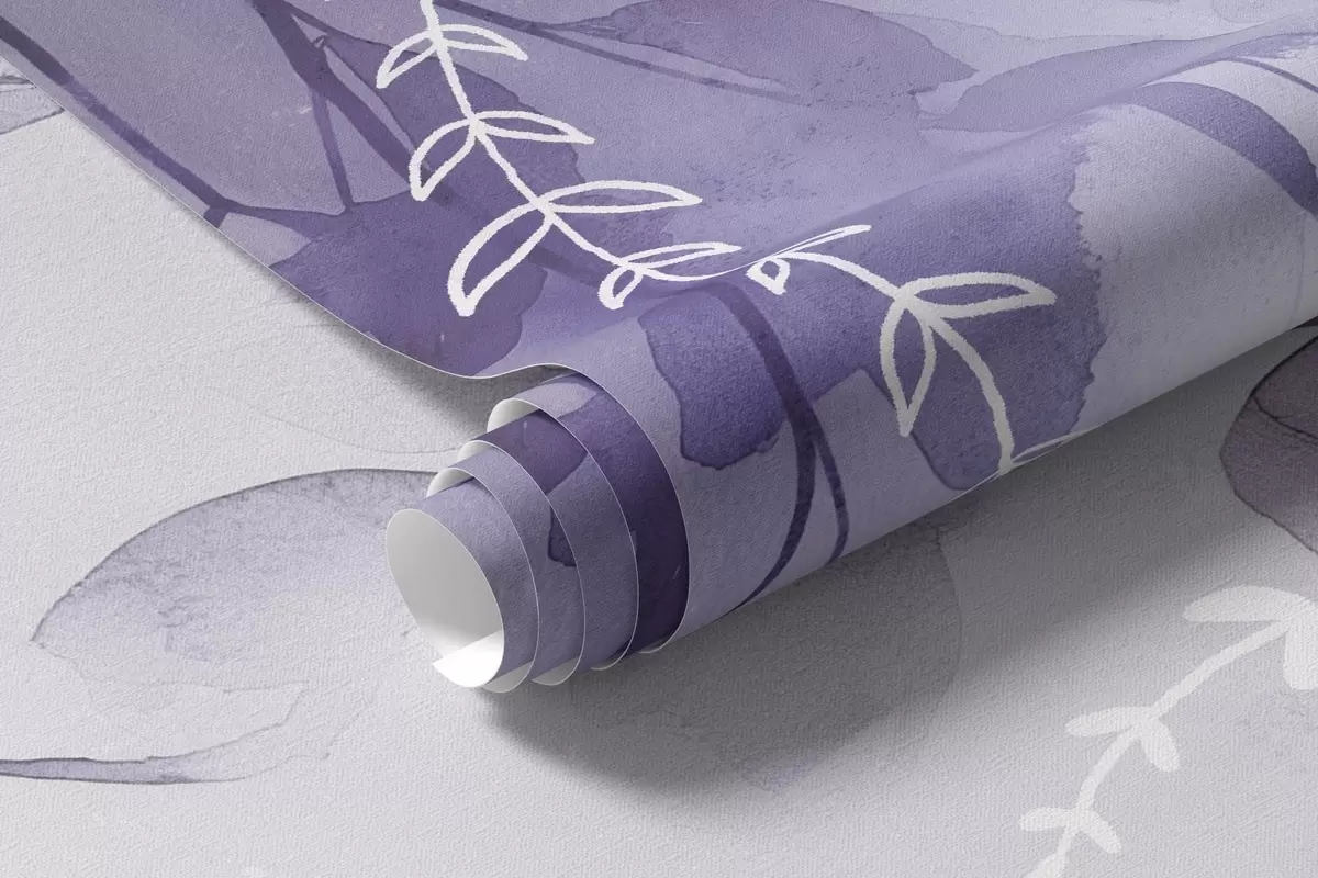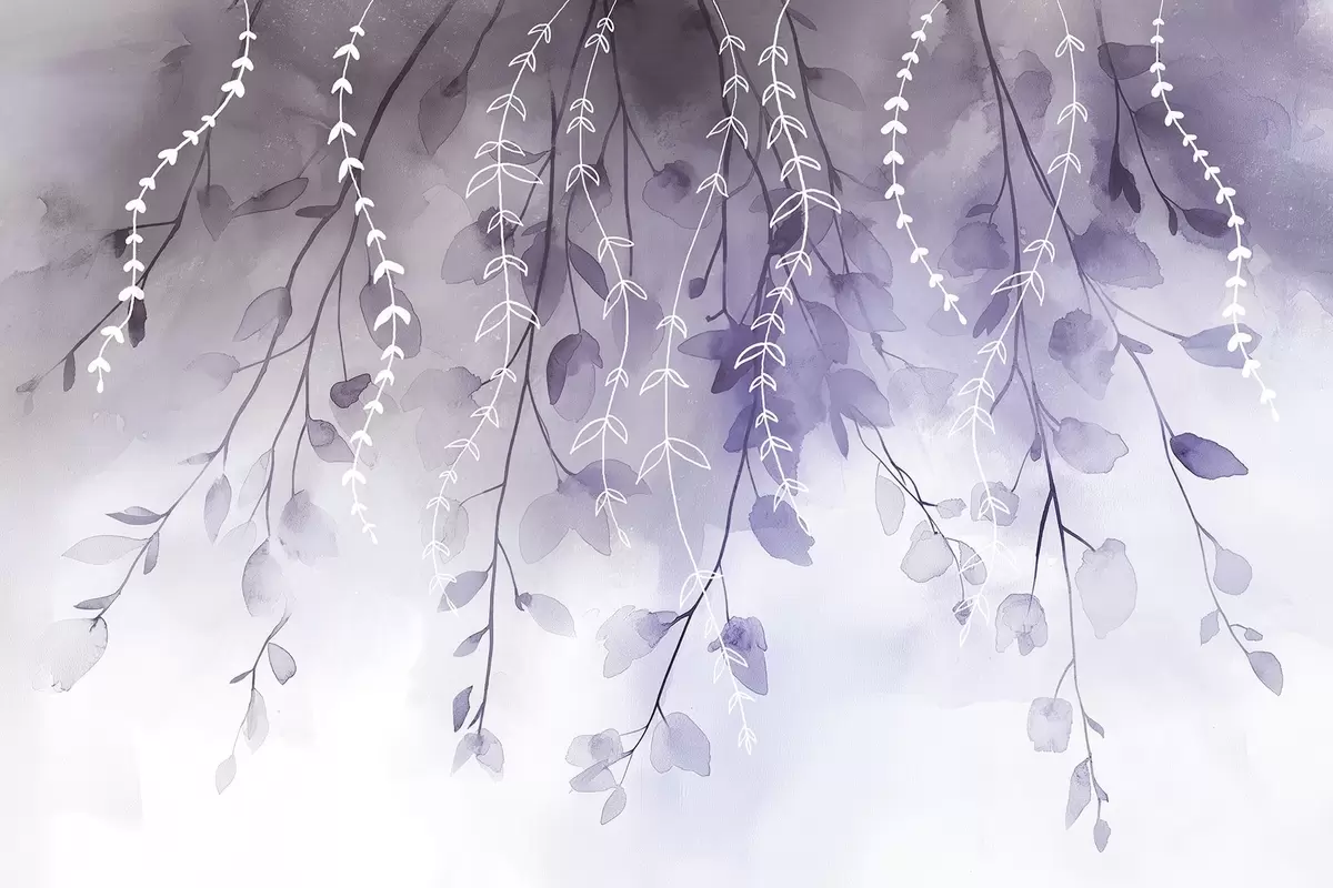Fototapetes Zari ar lapām akvareļu stilā, dabiski violetas krāsas Nr. w04007v2