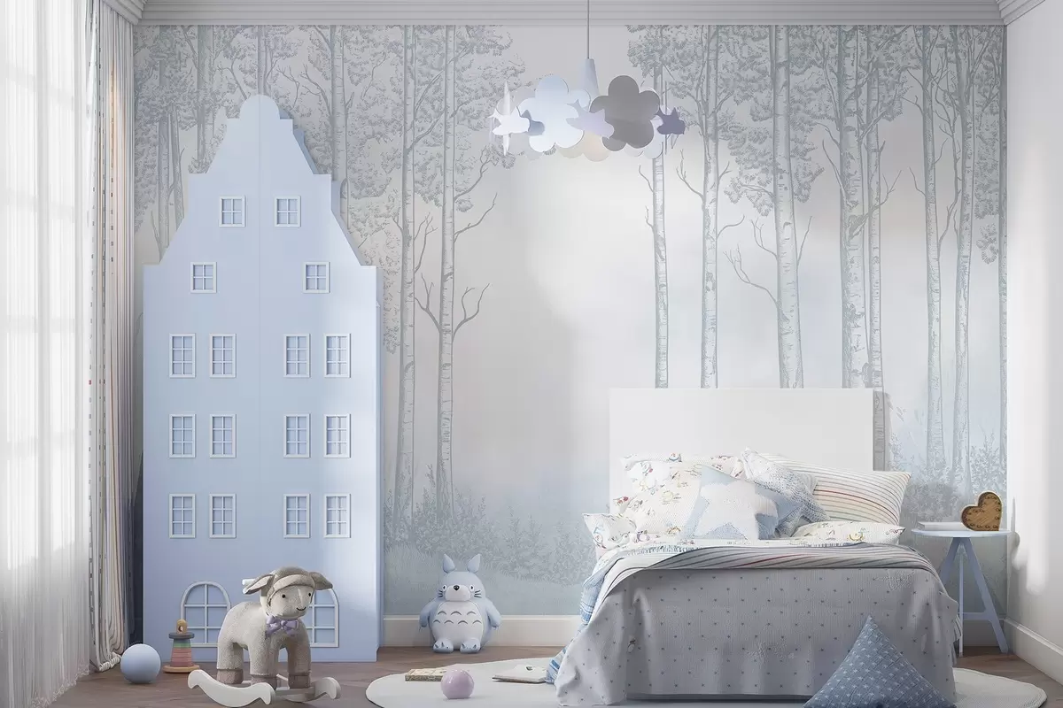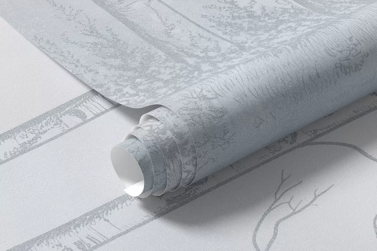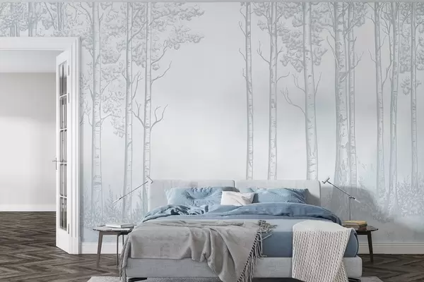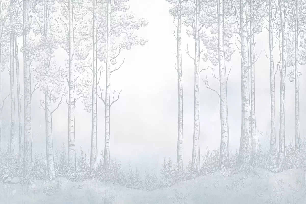 Fototapetes Mežs ar bērziem, minimālisms, daba, zila krāsu palete Nr. w04009