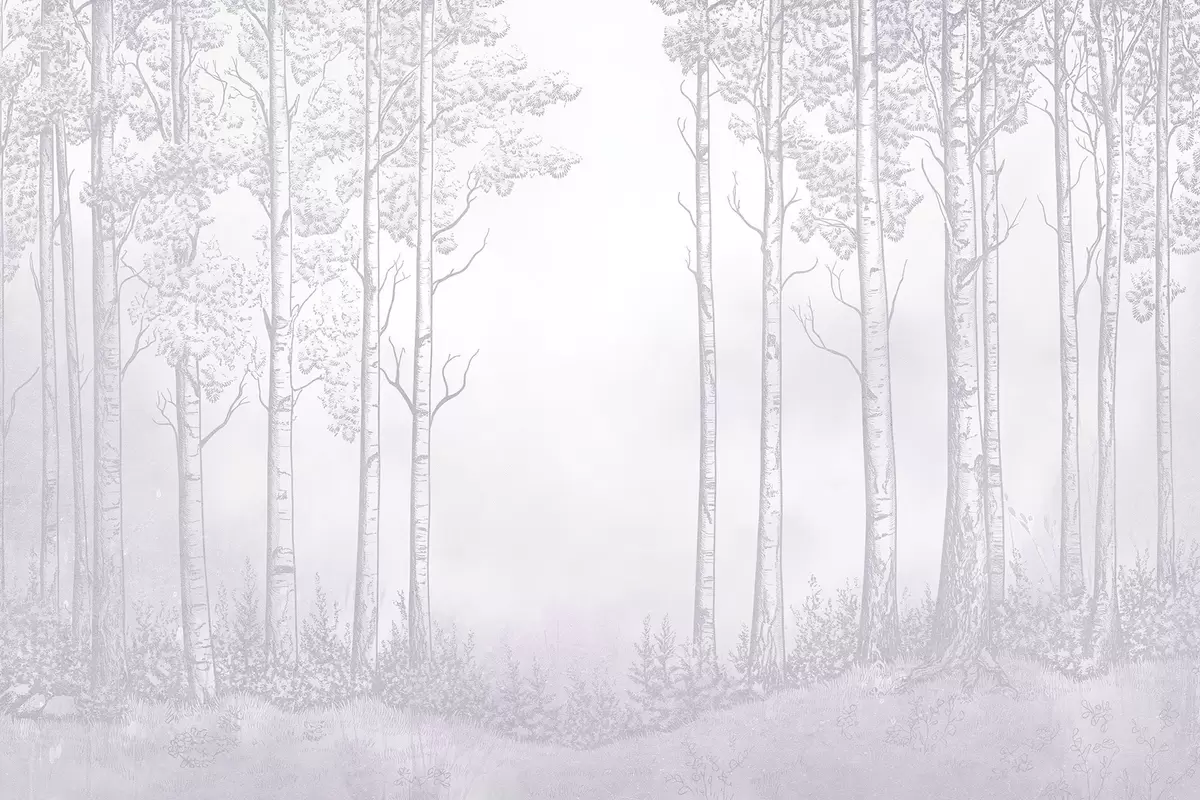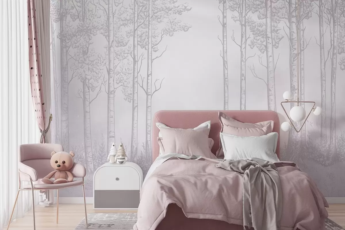Fototapetes Mežs ar bērziem, minimālisms, daba, rozā krāsu palete Nr. w04009v2