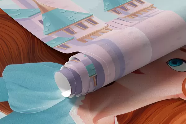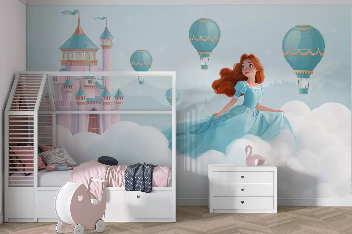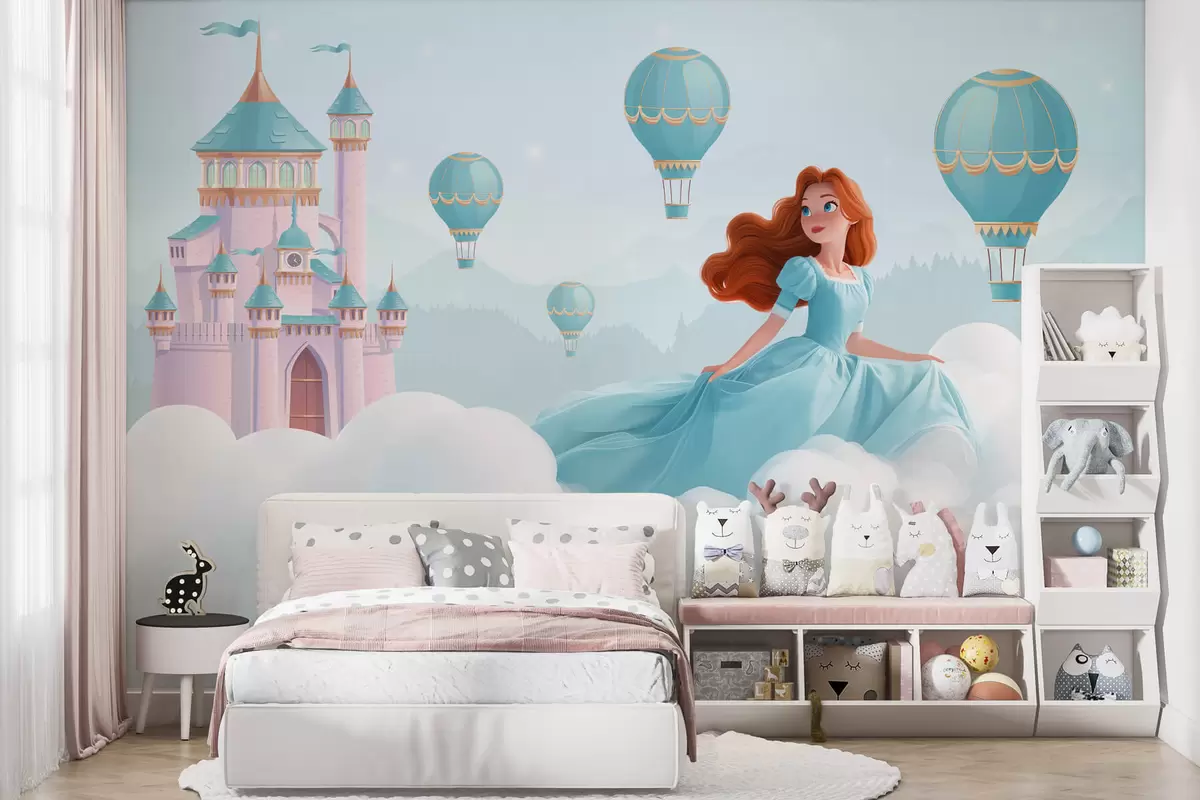 Fototapetes Princese starp mākoņiem uz ainavas fona ar pili Nr. w04015