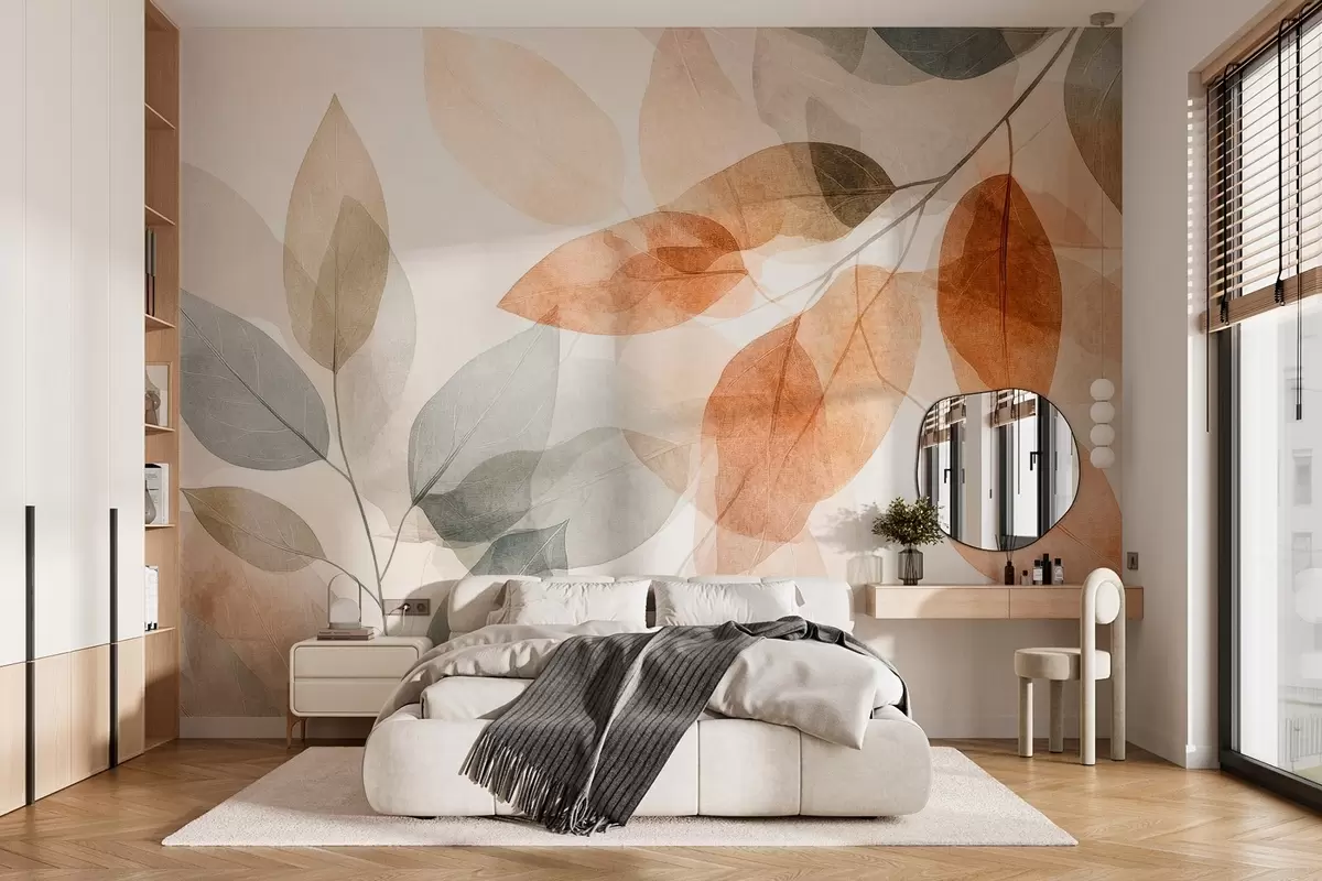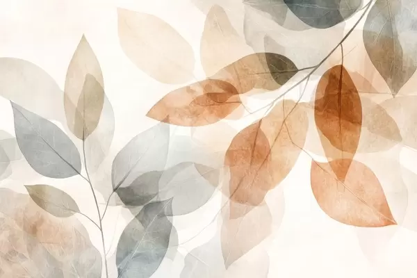 Fototapetes akvareļa stila lapas sēpijas un pelēkos toņos Nr. w04024