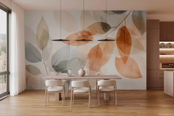 Fototapetes akvareļa stila lapas sēpijas un pelēkos toņos Nr. w04024