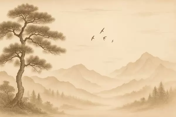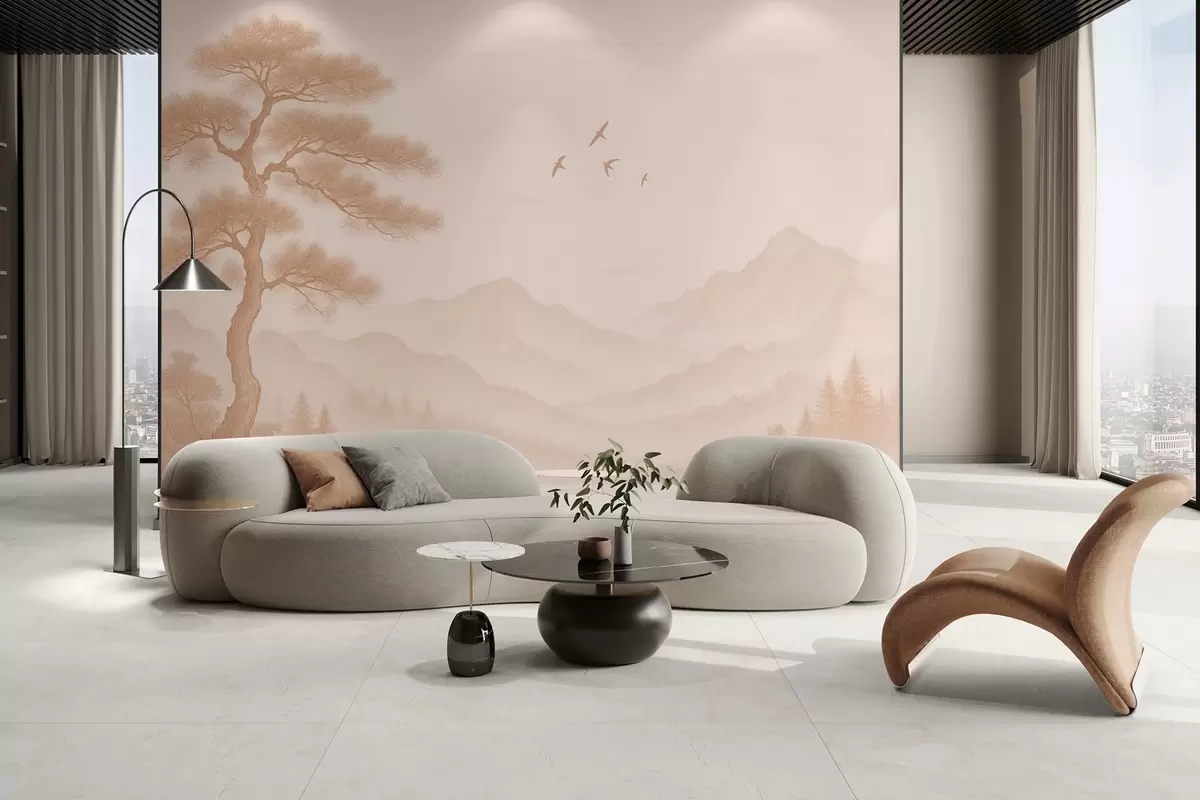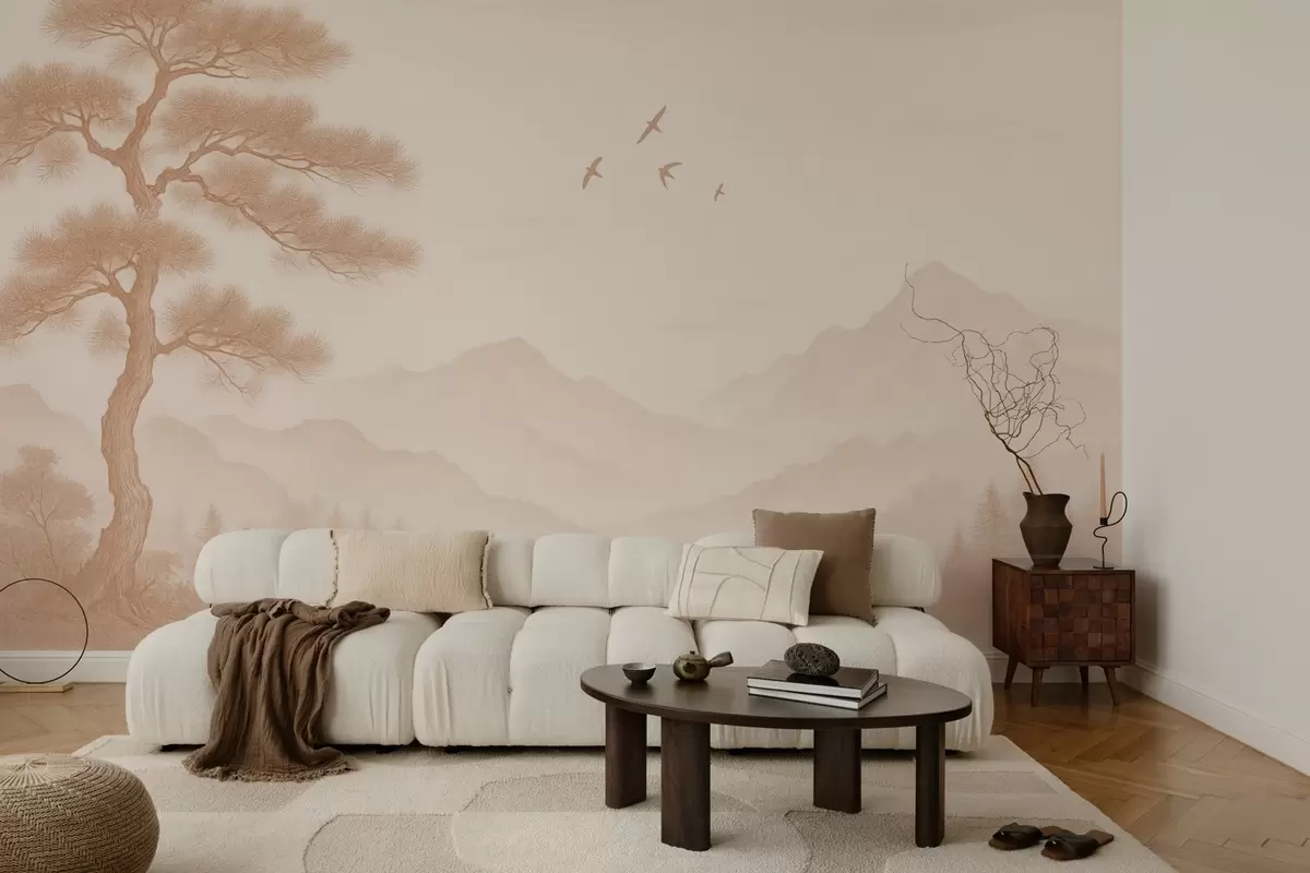 Fototapetes pauguru panorāma ar lielu koku mokaskrāsas toņos Nr. w04033v1