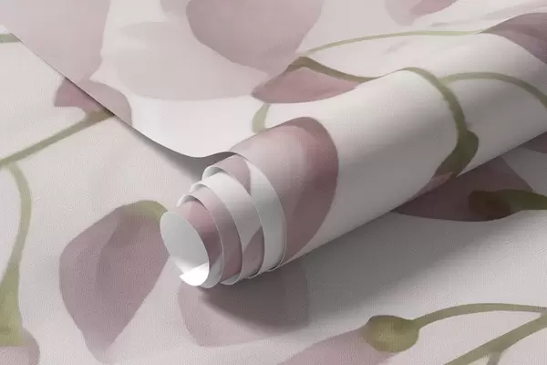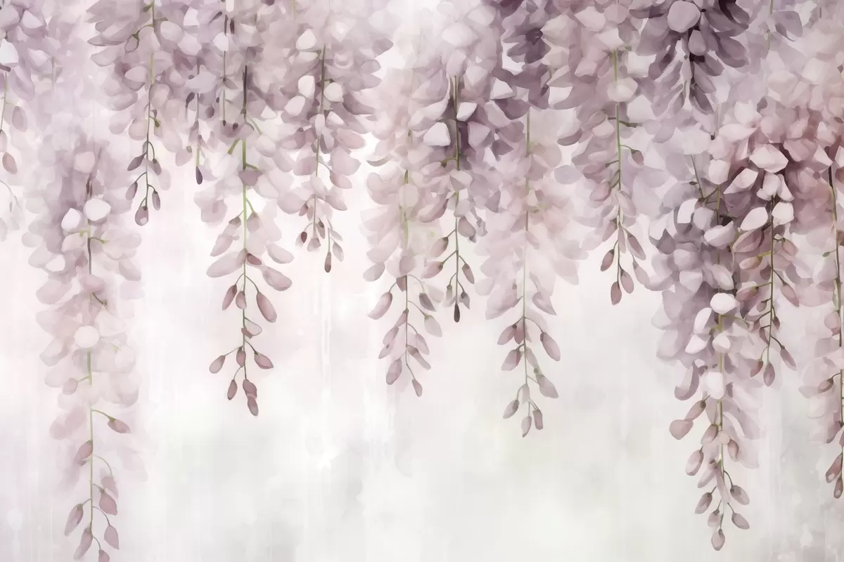 Fototapetes Maigs akvareļkrāsas skats krēmīgi rozā toņos ar kaskādveida vistērijas ķekariem, kas veido sapņainu ziedu aizkaru Nr. w04034v2