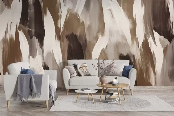 Fototapetes bstraktā tekstūra ar siltiem zemes toņiem - krējumu, karameli un kafiju -, kas saplūst plūstošos, dziļuma un maiguma pilnos otas triepienos Nr. w04035v2