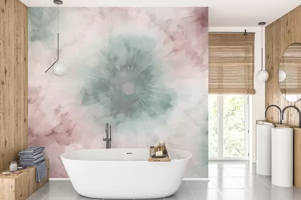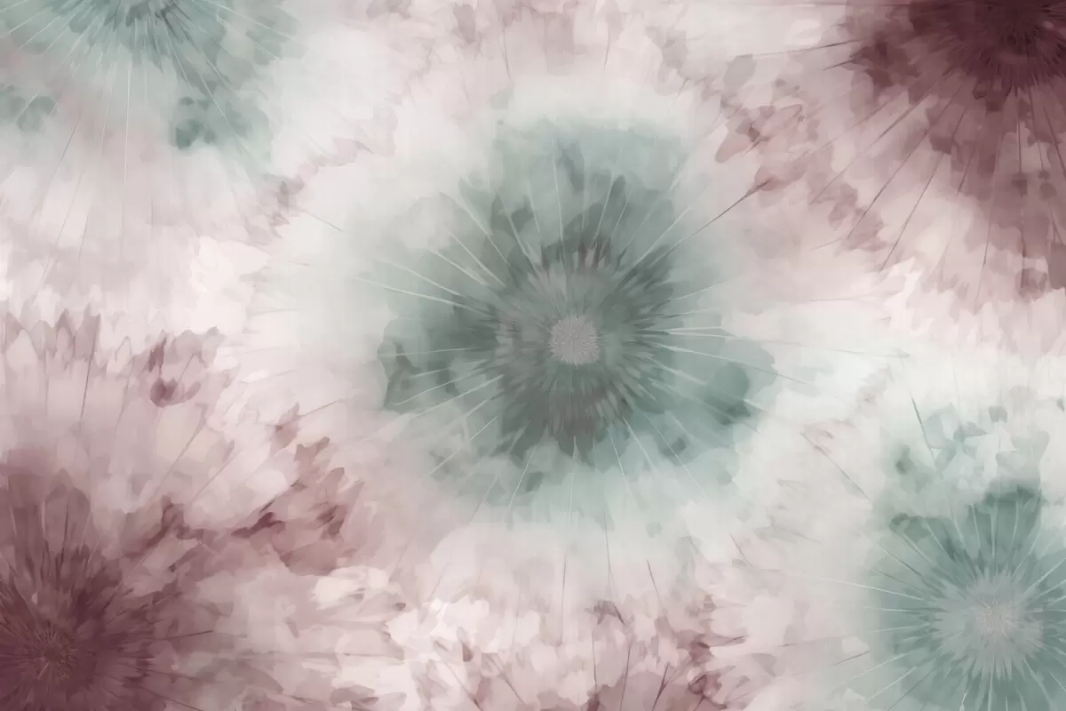 Fototapetes Akvareļkrāsas radiālais raksts, kurā saplūst miglaini zaļš un putekļaini rozā, atgādinot par rīta rasas maigumu un pirmo dienas elpu Nr. w04036v2