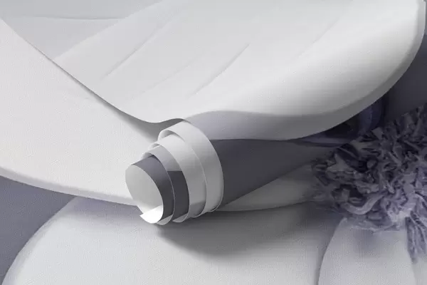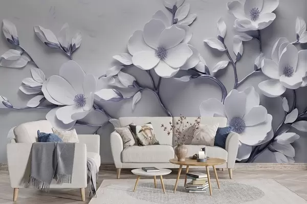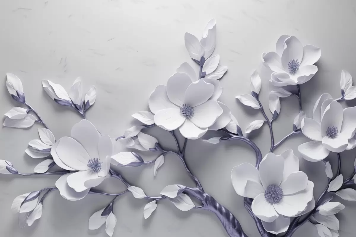Fototapetes Dimensiju ziedu dizains maigos baltos un violeti pelēkos toņos Nr. w04039v1