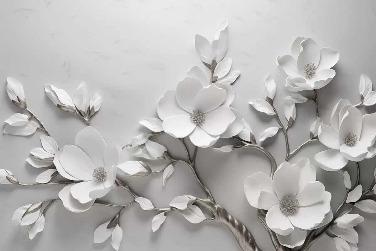 Fototapetes Izmēra ziedu zars tīri baltā un neitrālos toņos Nr. w04039v2