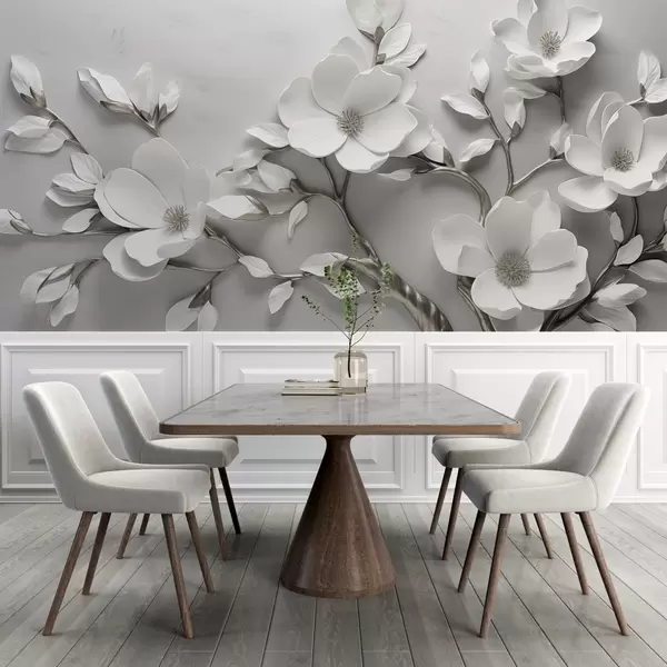 Fototapetes Izmēra ziedu zars tīri baltā un neitrālos toņos Nr. w04039v2