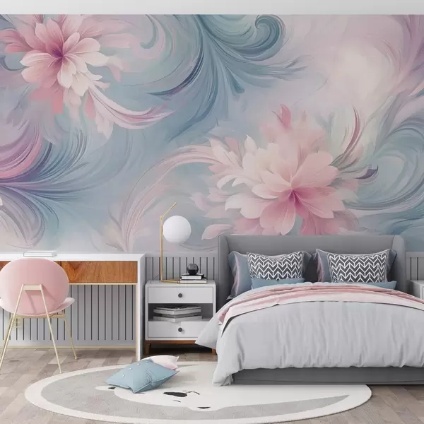 Fototapetes Ziedi un lapas rozā un zilā krāsā Nr. w04048