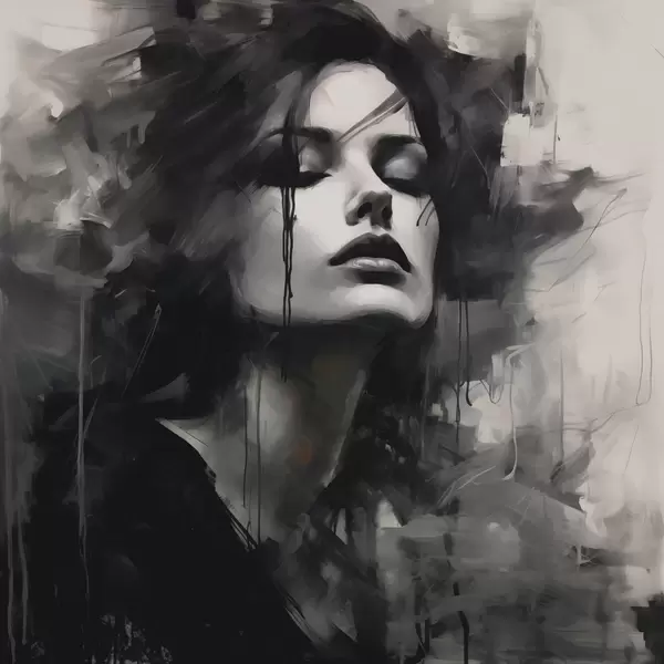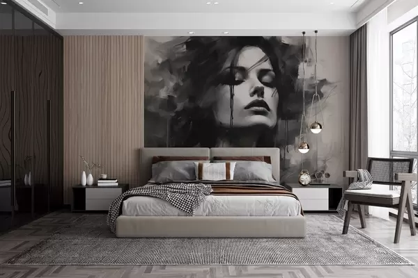 Fototapetes Sievietes portrets pelēkā un melnā apģērbā Nr. w04049