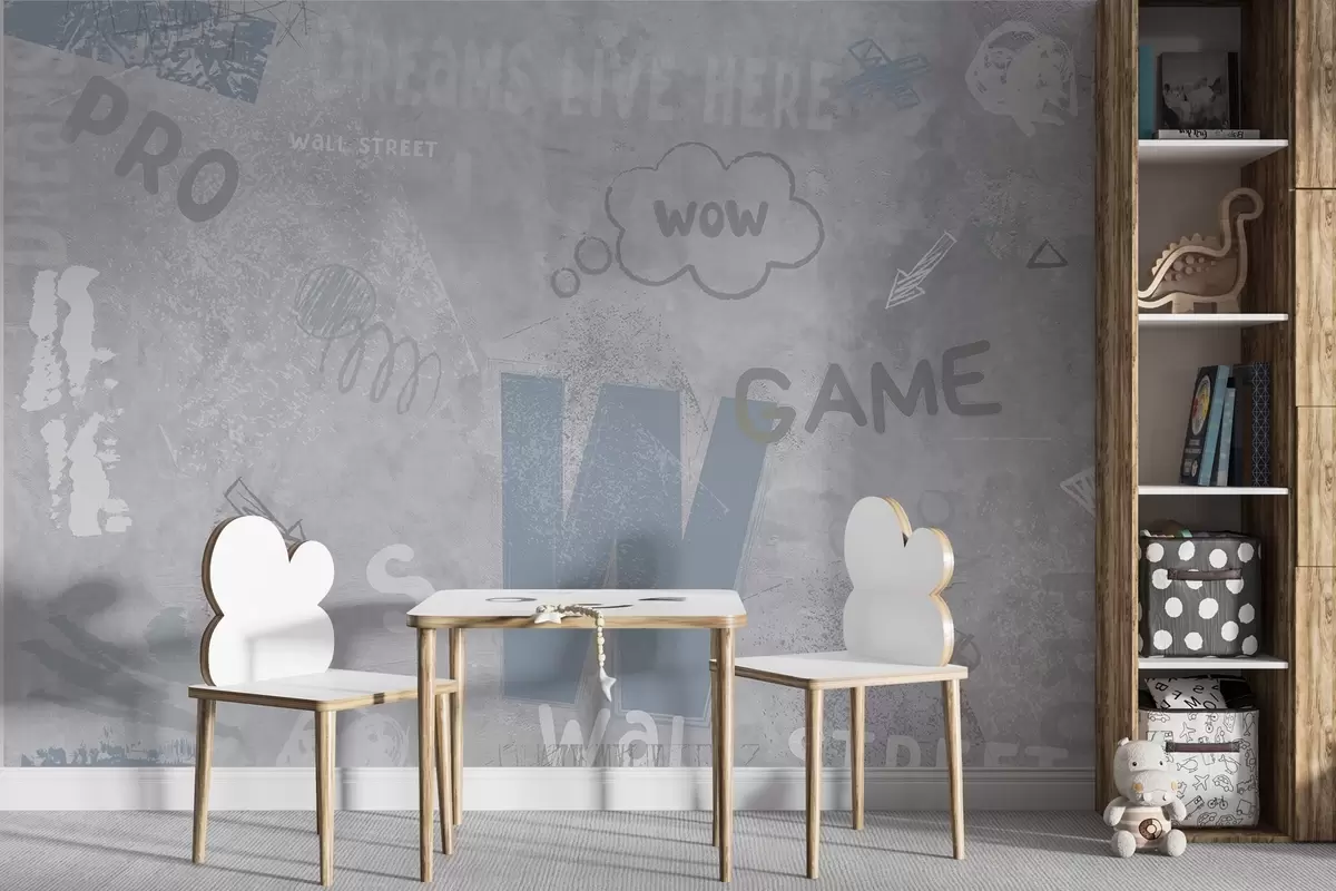 Fototapetes Dizains ielu mākslas stilā ar zilas krāsas uzrakstiem uz betona sienas fona Nr. w04056v1