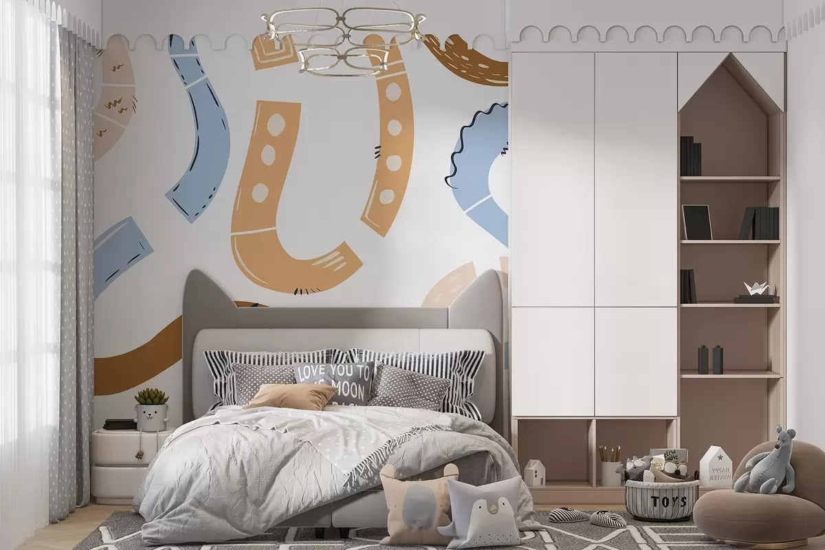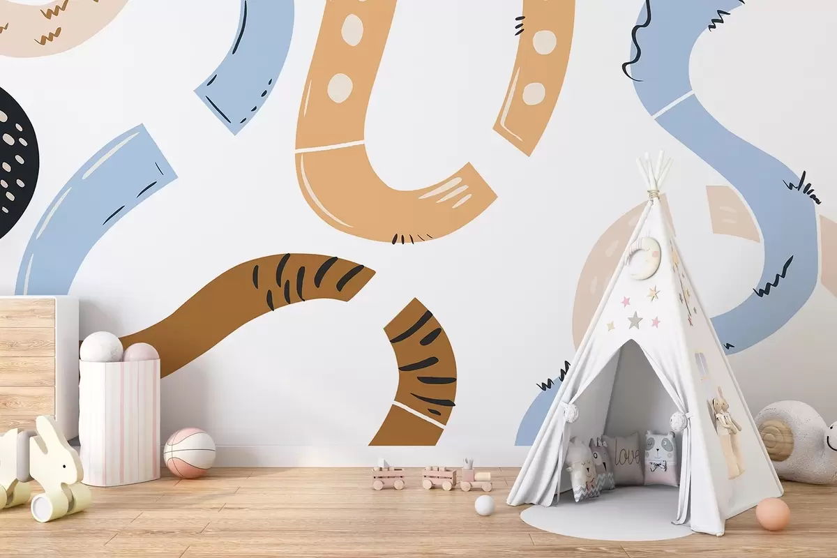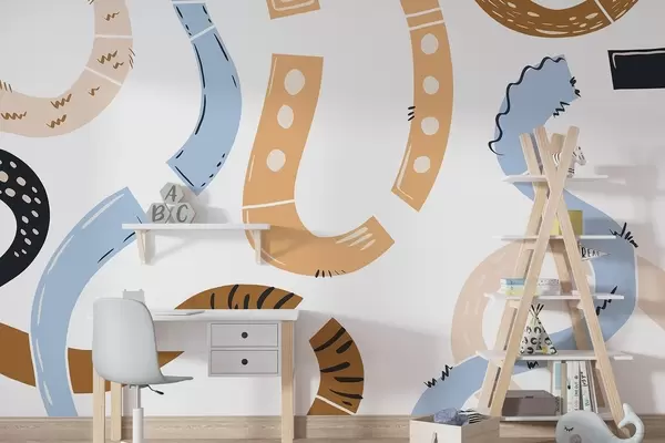 Fototapetes Abstraktie zīmējumi, nepilngadīgajiem, doodles, brūns, zils, rozā Nr. w04066
