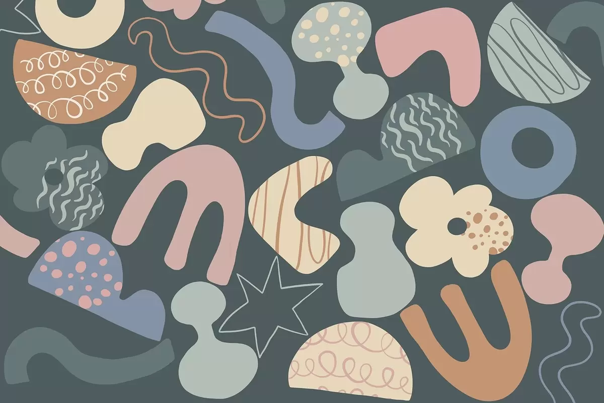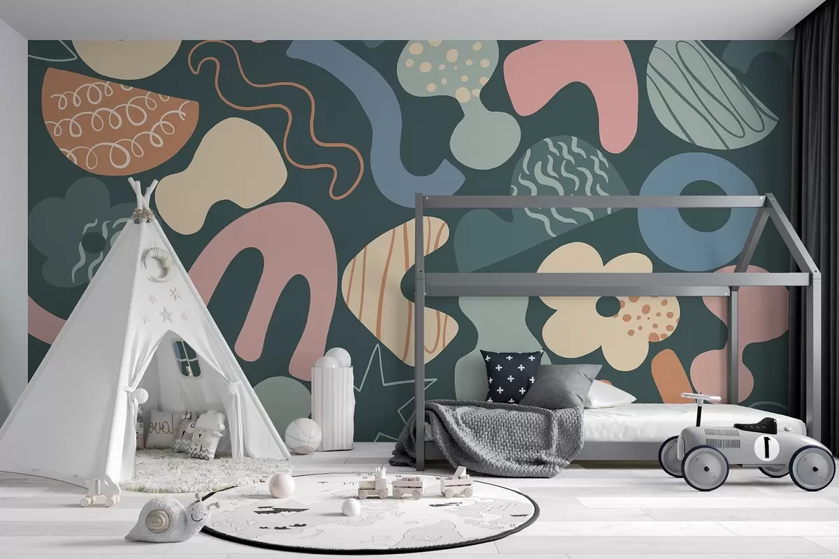 Fototapetes Ģeometriskas figūras ar doodles zīmējumu, nepilngadīgais, tumši zaļš fons Nr. w04068v3