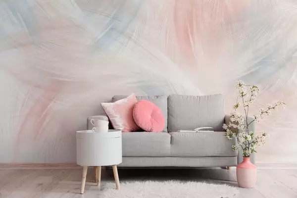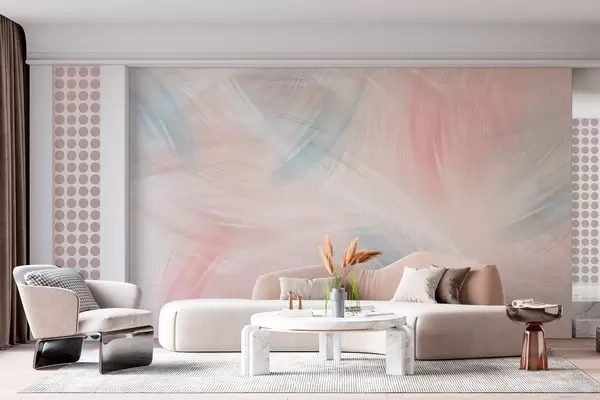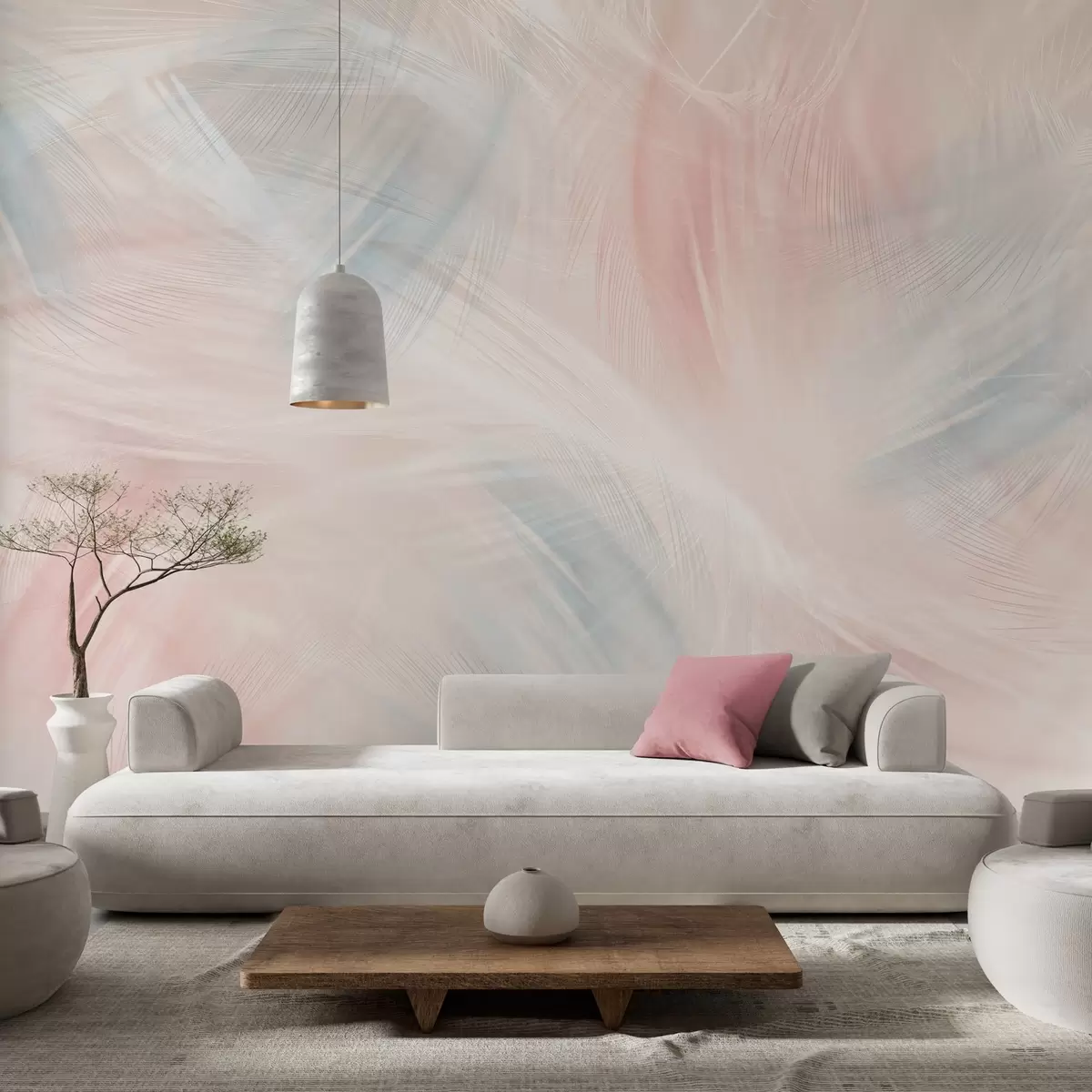 Fototapetes gaisīgas spalvas rozā un zilos toņos Nr. w04071