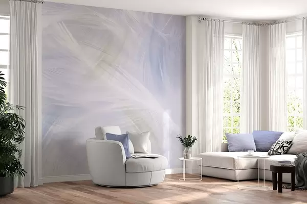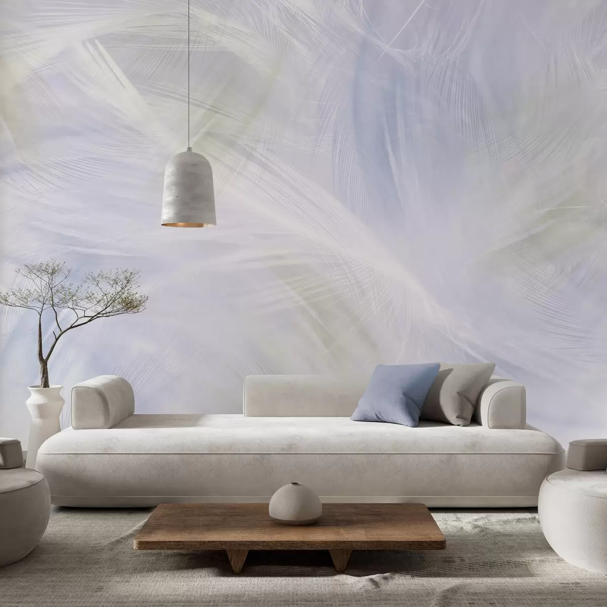 Fototapetes gaisīgas spalvas smilškrāsas un zilos toņos Nr. w04071v1