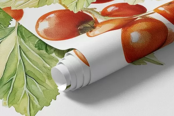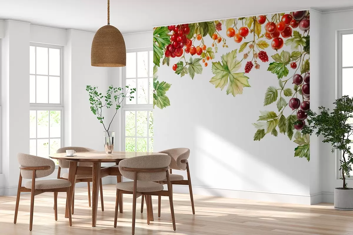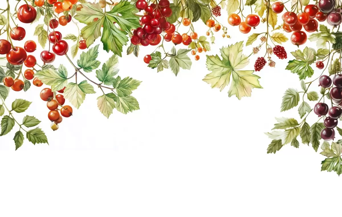 Fototapetes jāņogu ķekari, kas karājas no augšas akvareļu stilā uz balta fona Nr. w04073