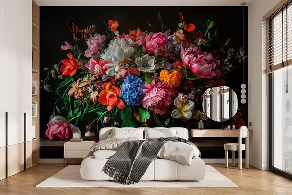 Fototapetes pušķis XVII gadsimta holandiešu eļļas glezniecības stilā ar greznu ziedu kompozīciju. Nr. w04078