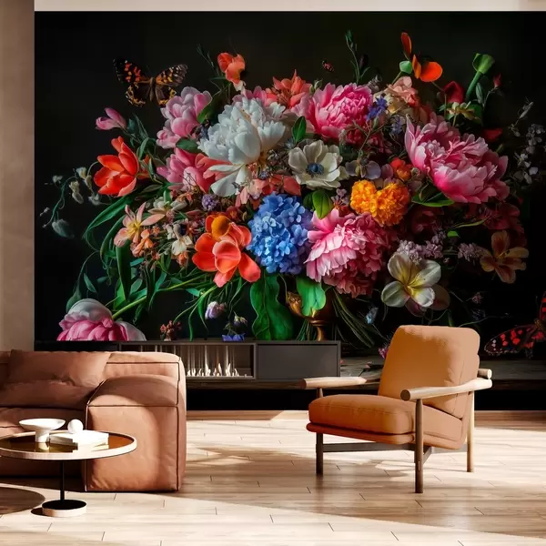 Fototapetes pušķis XVII gadsimta holandiešu eļļas glezniecības stilā ar greznu ziedu kompozīciju. Nr. w04078