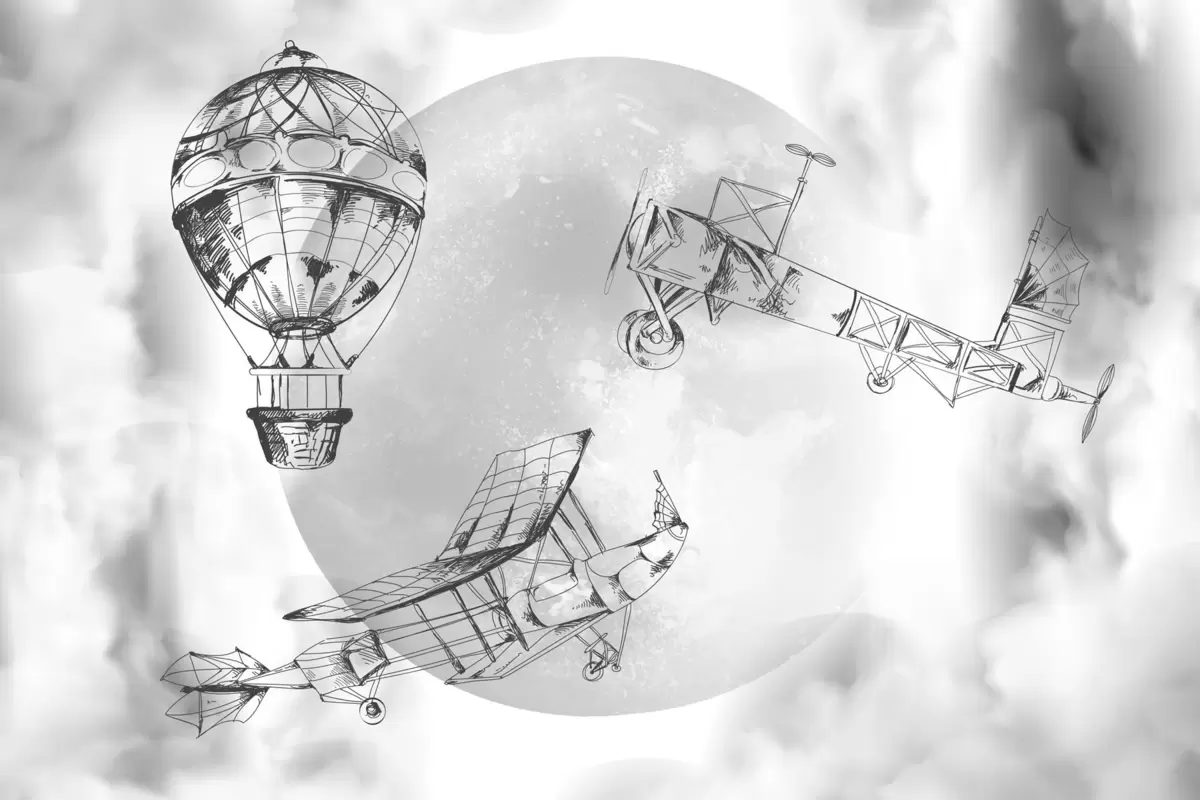 Fototapetes Retro lidmašīnas uz mēness un mākoņu fona Nr. w04085