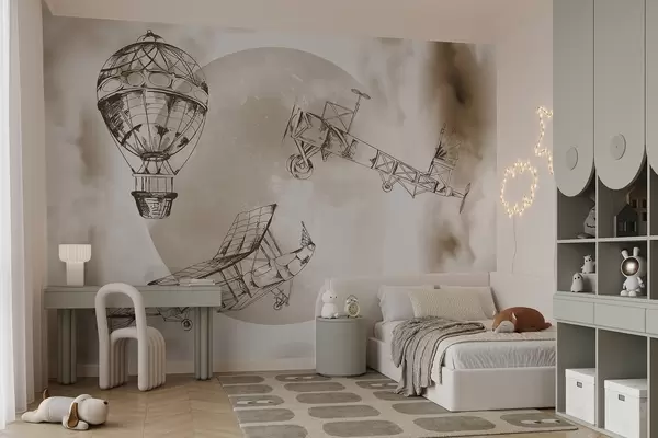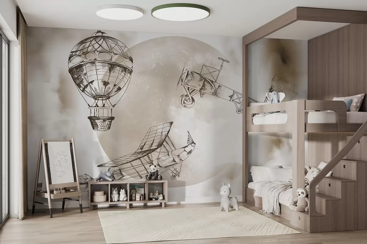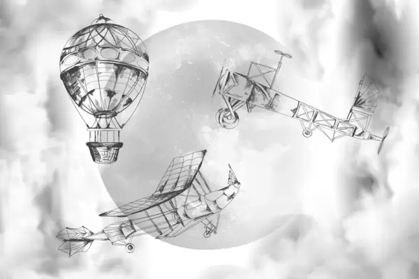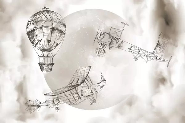 Fototapetes Retro lidmašīnas uz mēness un mākoņu fona Nr. w04085v1