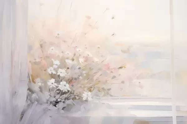 Fototapetes Puķu pušķis pie loga imitē glezniecību Nr. w04101
