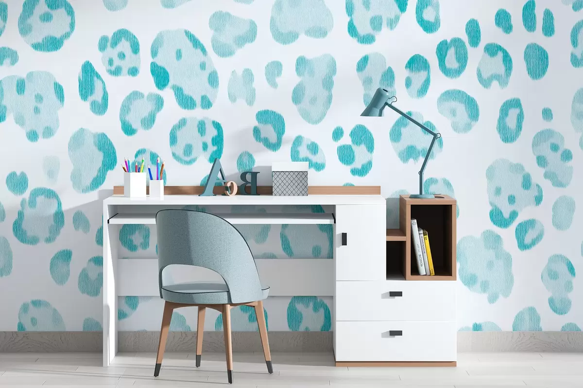 Fototapetes Leoparda raksts, vilnas tekstūra, zila krāsa Nr. w04112