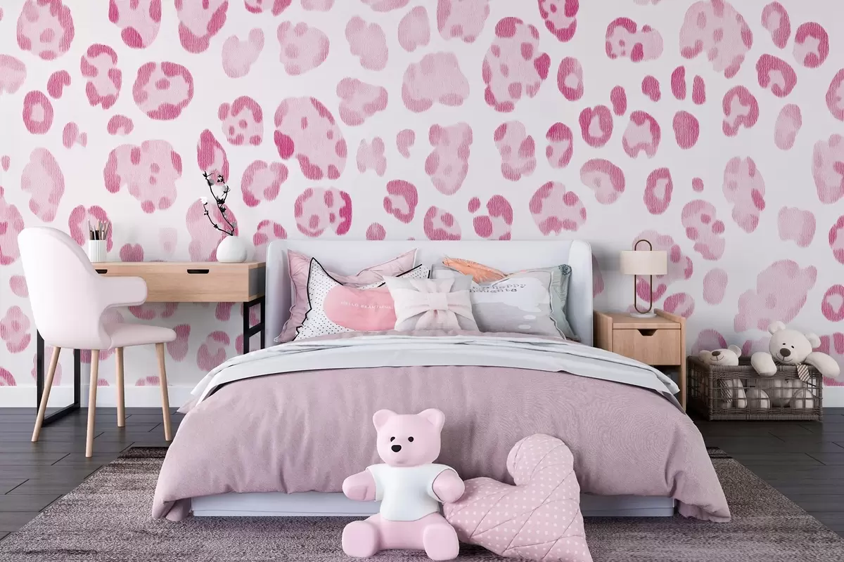 Fototapetes Leoparda raksts, vilnas tekstūra, rozā krāsa Nr. w04112v2