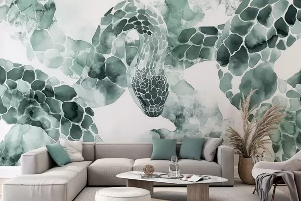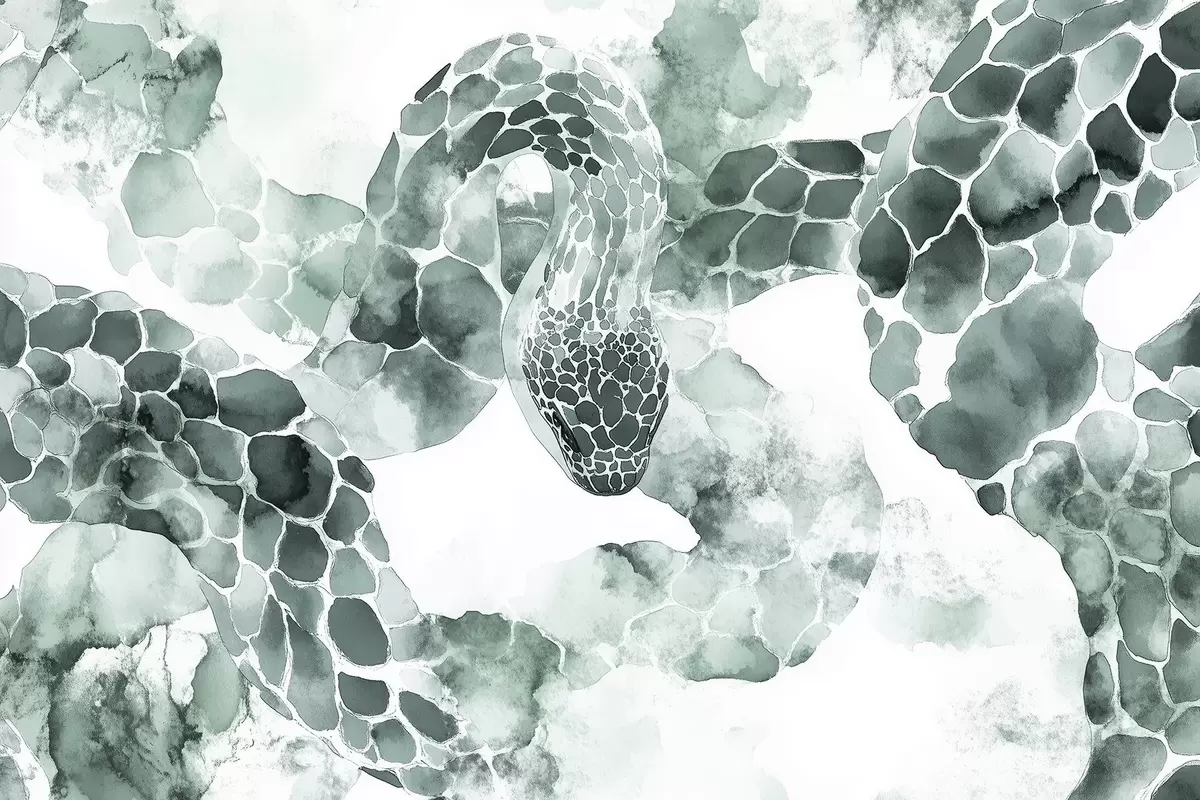 Fototapetes Čūskas siluets, akvareļu stilā, zaļas krāsas Nr. w04113v2