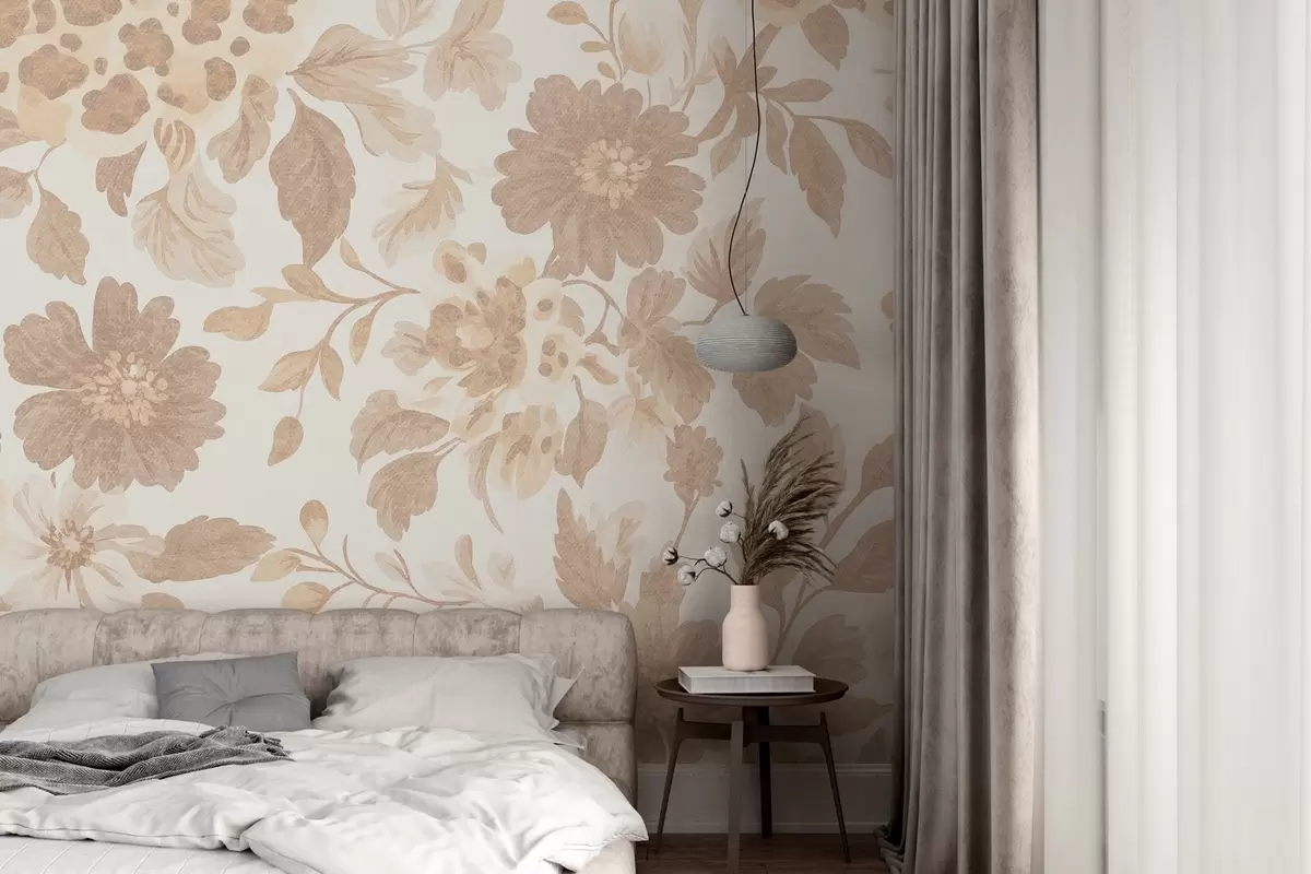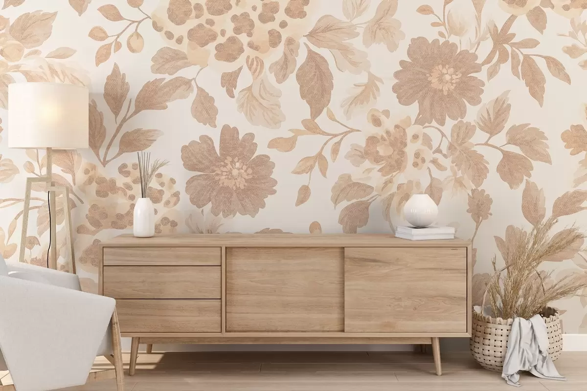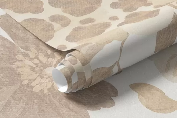 Fototapetes Boho stila ziedi ar leoparda apdruku, smilškrāsas krāsā Nr. w04114