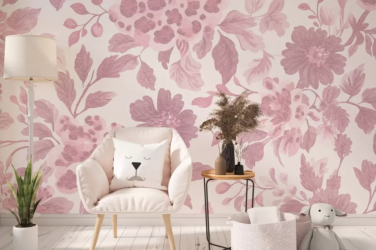 Fototapetes Boho stila ziedi ar leoparda apdruku, rozā krāsā Nr. w04114v3