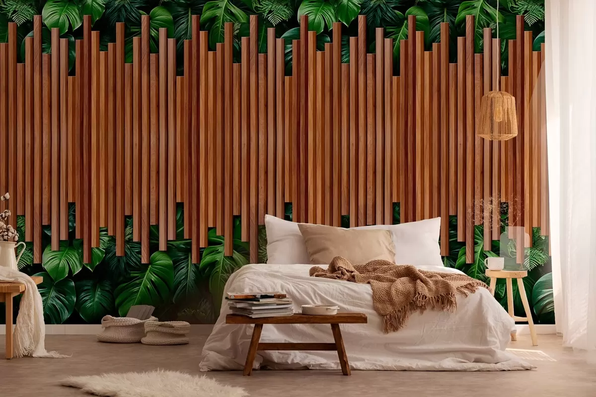 Fototapetes Koka paneļu un zaļas sienas imitācija Nr. w04138