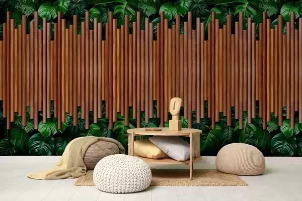 Fototapetes Koka paneļu un zaļas sienas imitācija Nr. w04138