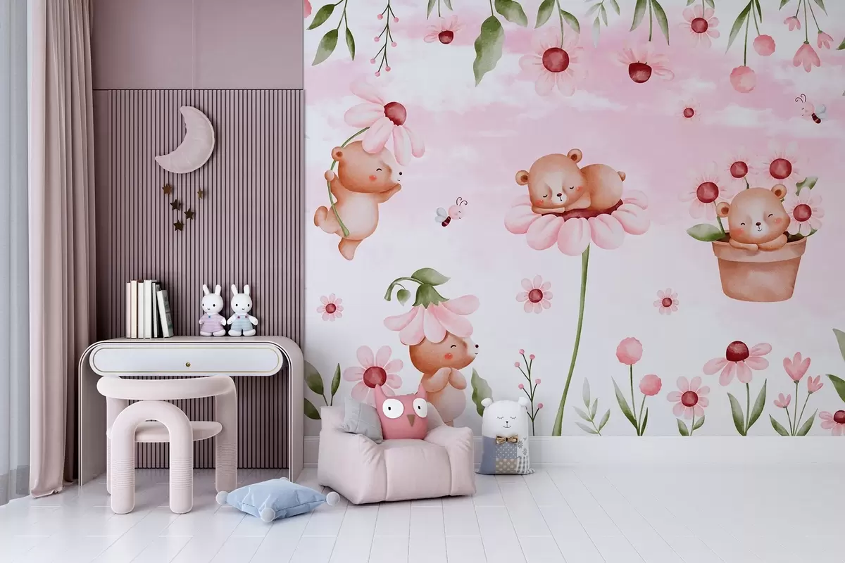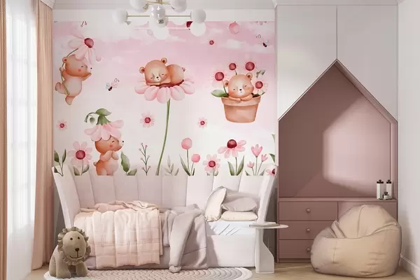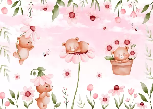 Fototapetes Lāči ar ziediem, pasaku dzīvnieki Nr. w04143