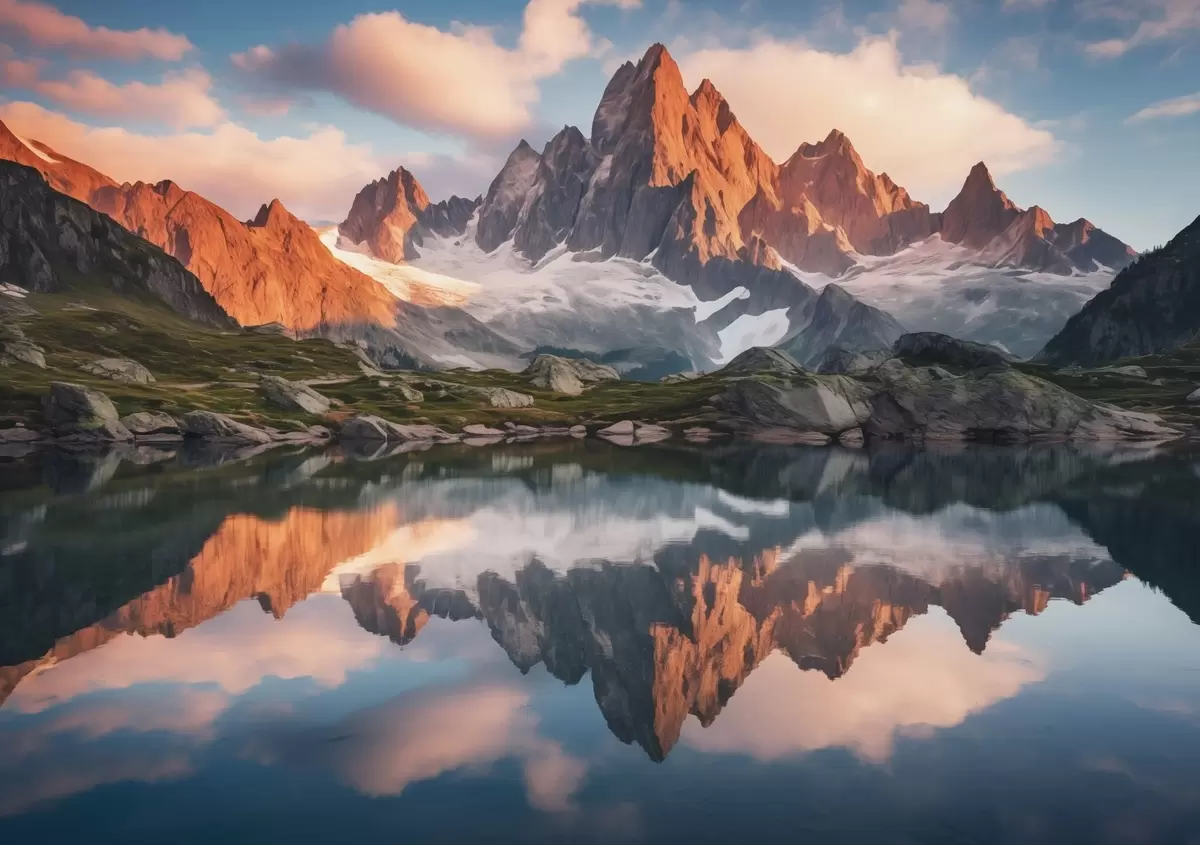 Fototapetes Kalni rītausmā, atspulgs ūdenī, reālistiska ainava Nr. w04150