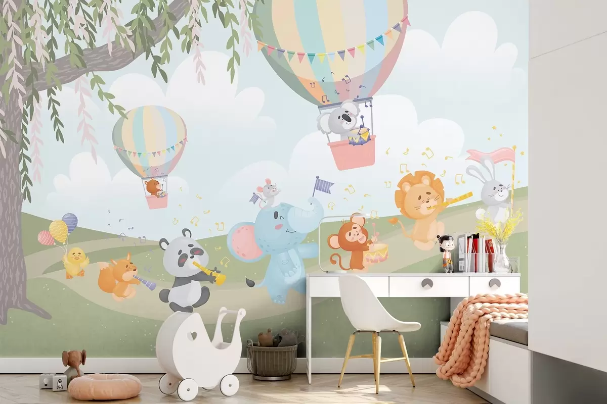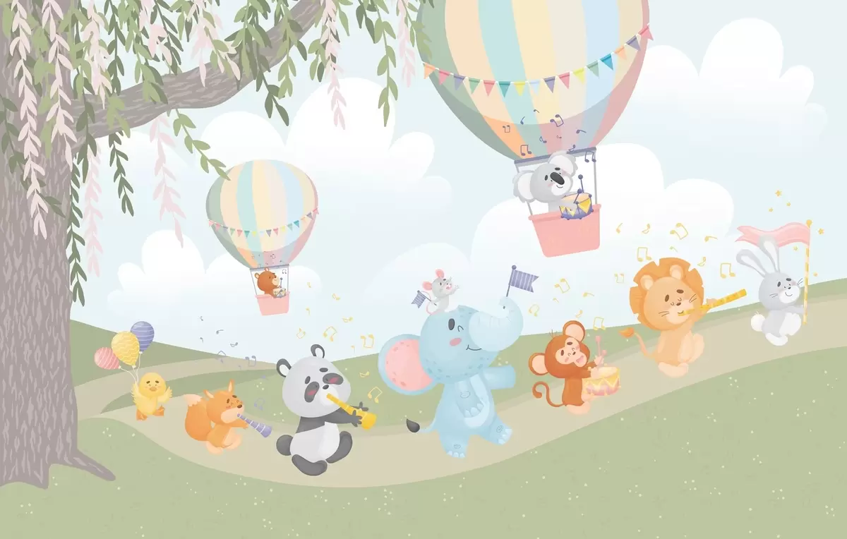 Fototapetes Ainava ar dzīvniekiem, kas spēlē mūzikas instrumentus Nr. w04200